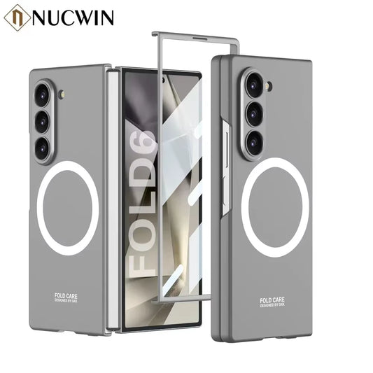 Matte Skin Feeling Metal Magnetic Case for Galaxy Z Fold 6 Magsafe Wireless Charger Slim PC Cover for Z Fold6