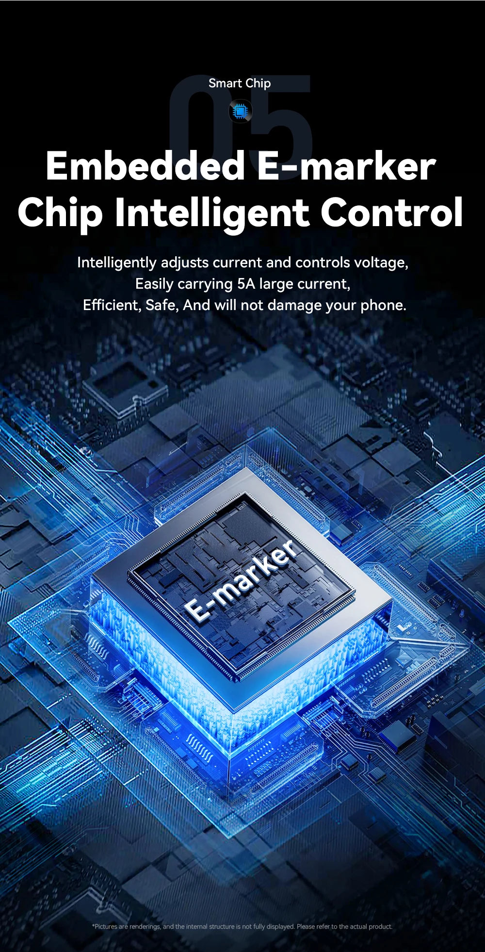 100W built-in E-MARK chip can carry 5A high current, which can provide fast charging for smart devices that support PD fast charging