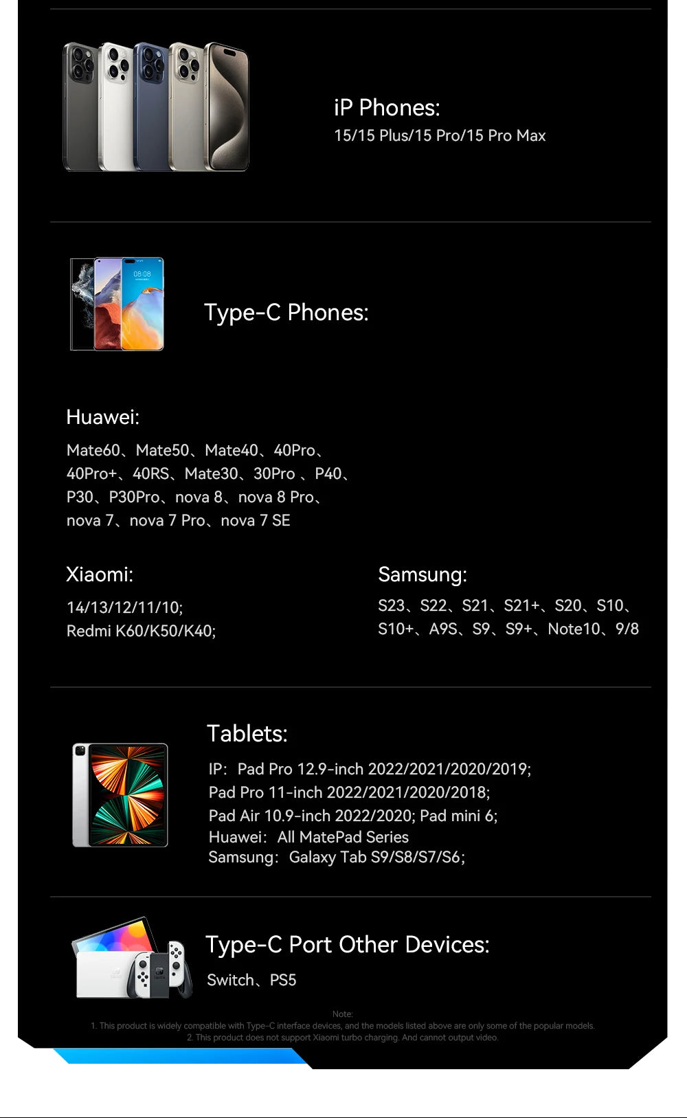 Compatibility: USB C Cable for Macbook Pro 13.3 15.4 14 16 iPad Pro 2021 2020 2019,USB C Cable for Xiaomi 12 11 10 9 Pro,Type C Cable for MacBook Air(2022/2020/2019/2018),Type C Cable For Huawei P40 P30 Pro Mate 50 40 30 Pro nova 8/9 Pro,Cable For Samsung Galaxy A51 A50 A70 S22 S21 S20 S10 S9 S8 Note 10 9 8,USB C Cable For Xiaomi mi 12 11 10 Pro 9 9se 8 8se Poco X3 Mix 4 3,Cable For Oneplus 9r 10 9 8 pro HTC LG Meizu ZTE realme gt neo 2 k40,USB C Cable / USBC Cable / USB Type-C Cable / USB C to USB C Cable,PD 100W 60W fast charge charger phone charging cord / Usb type c cord,Built-in E-Marker chip, charging without harming the machine,20V/5A fast charging, 2.5 hours full MacBook pro