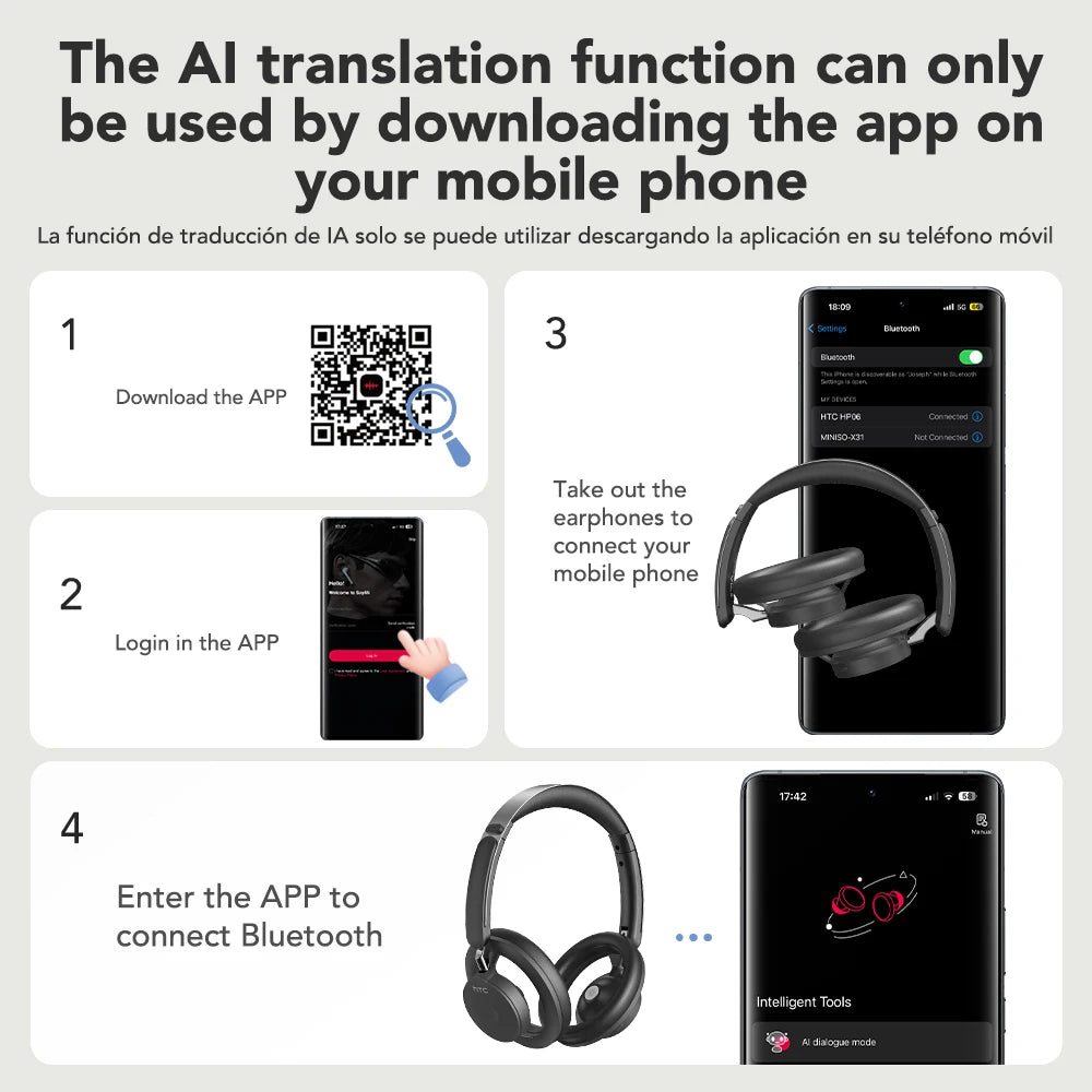 HTC HP06 Bluetooth V6.0 Foldable Wireless Headphones – Punchy Bass, Open Ear‑Airy Design