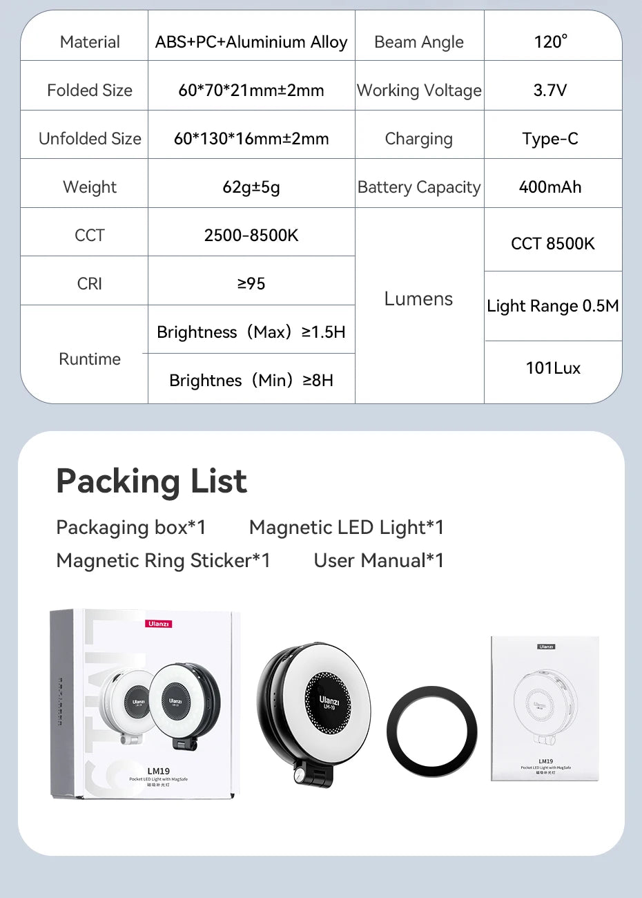 Ulanzi LM19 MagSafe Bi‑Color Flip Fill Light – CRI 95+, For Vlogs, Live Streaming & Mobile Photography