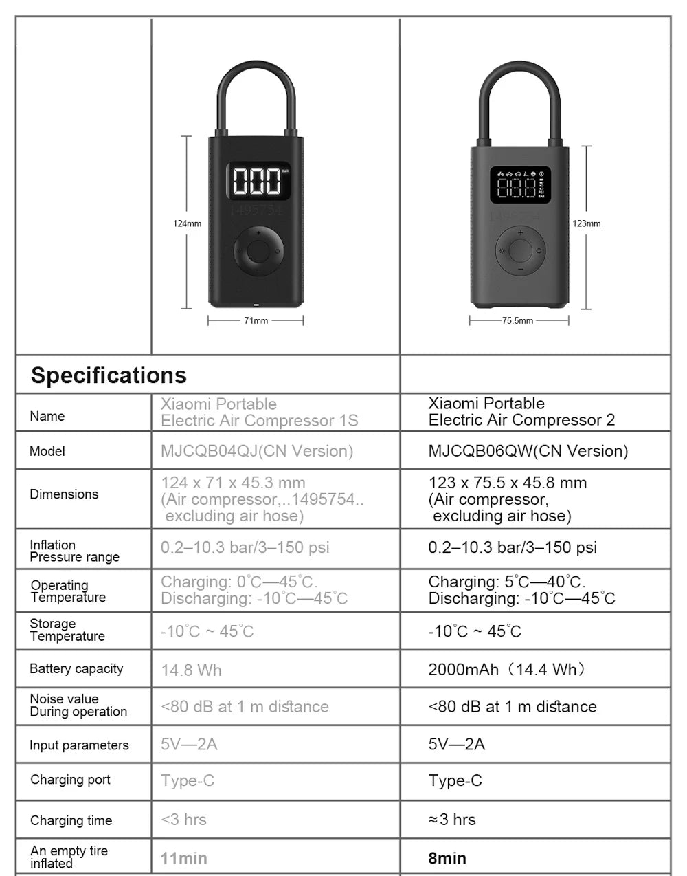 Xiaomi Mijia Portable Electric Air Pump 2 – Type-C Rechargeable Mini Tire Inflator (2000mAh, 5V)